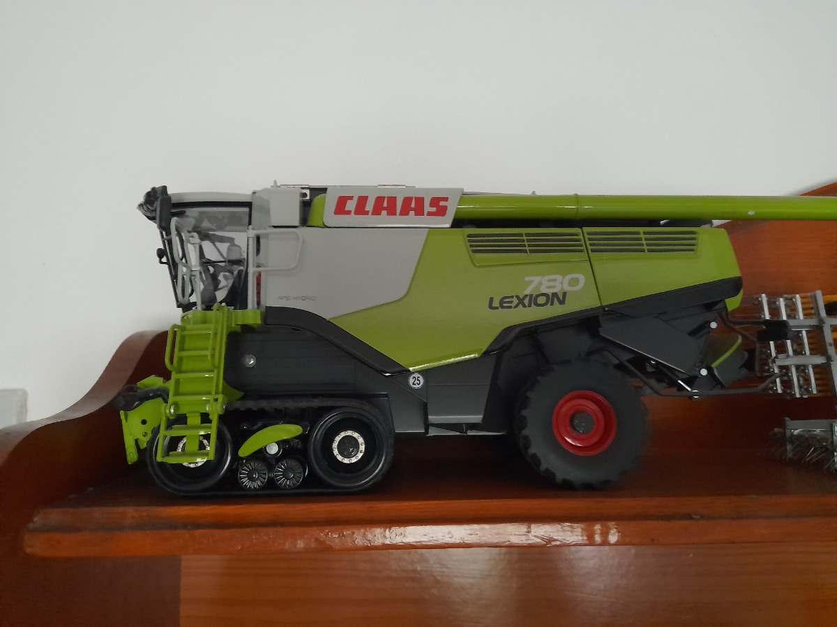Miniature agricole moisonneuse batteuse class lexion 780 1/32 de marque wiking très bon état manque 2 pièces de rabatteur sur la coupe et les caméras sur la coupe.