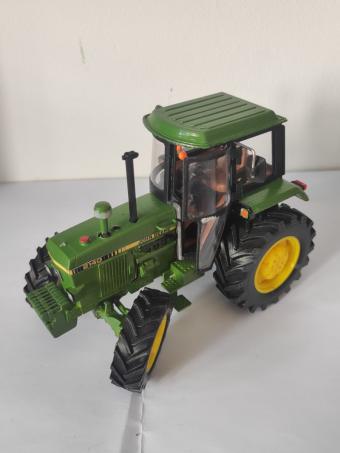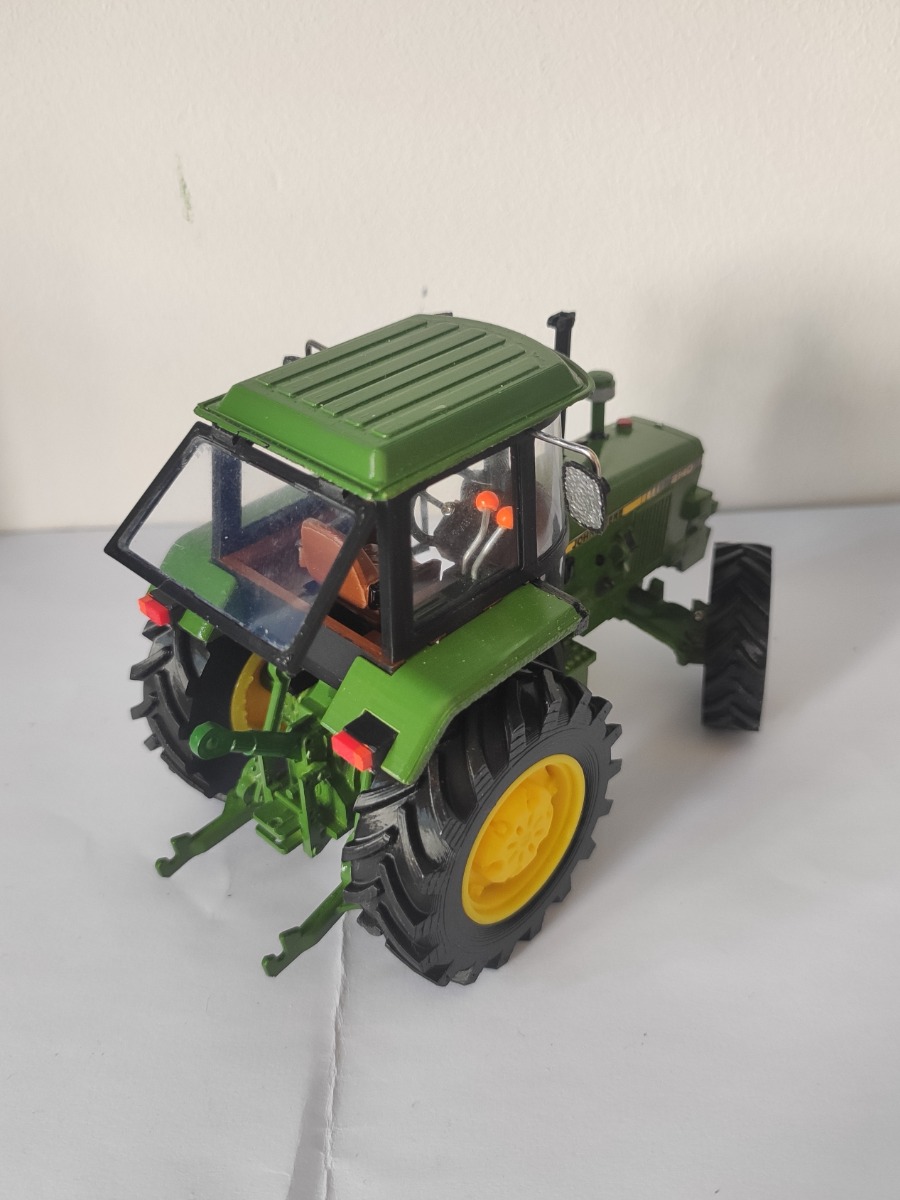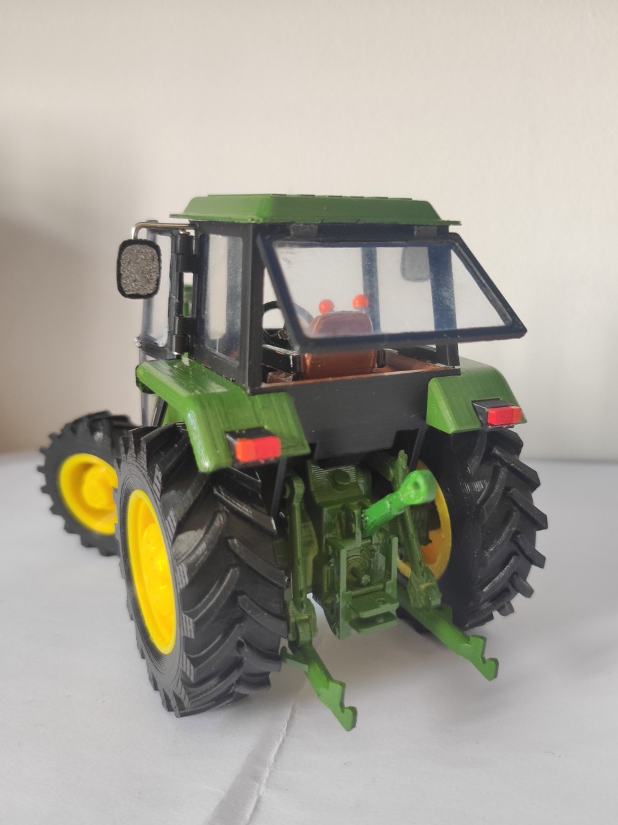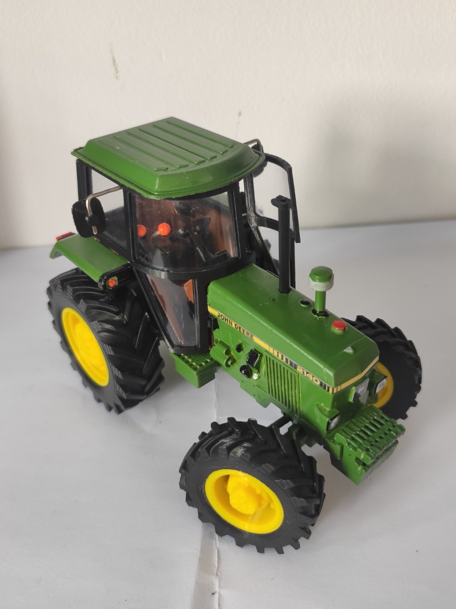 JOHN DEERE escale 1:32 artisanal, fabriqué avec impression 3D, valide pour modeles 1840, 2040 et 2140. Modele cabine ronde SG2 avec des vitres. Modele 4x4. Le porte et la fenêtre peuvent être ouvertes. Bras arrière mobiles. Le système de direction est mobile. Toutes les roues peuvent tourner. 8 Contrepoids indépendants. Autocollants inclus (1840, 2040, 2140)