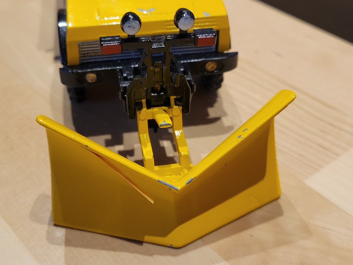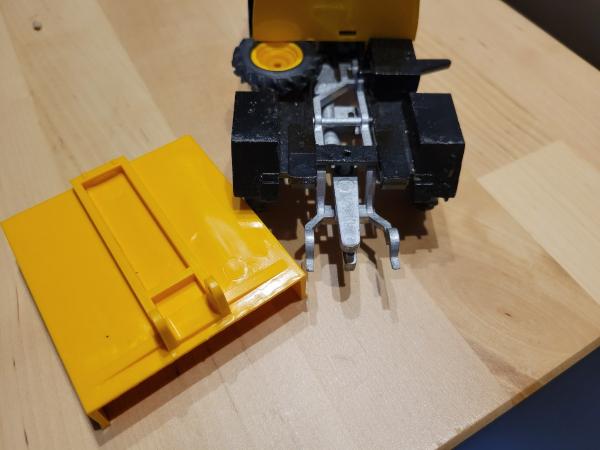 II manque aussi à l'arrière la tirette métallique permettant de tenir la benne sur l'engin