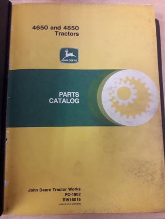 Catalogue pièces concernant les tracteurs JOHN DEERE 4650 et 4850. Le tout dans un classeur. Bon état. Ne manque pas de pages. En anglais.