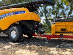 NEW HOLLAND cr7.90 modifié sur base de cr10.90, suppression d’un radiateur comme sur les cr 7.90, découpe de la coupe pour la passer en 8m80 au lieu de sa taille d’origine trop grande pour une cr7.90, ajout d’un chariot de coupe perard de allitrac, et de l’attelage pour pouvoir l’atteler sur la machine, ajout de roue Michelin mega Xbib à l’avant en remplacement des chenilles. Et changement des autocollants ainsi que différentes pièces repeintes (en noir NEW HOLLAND) pour coller avec la vrai couleur de ses machines, vendu dans sa boîte d’origine, celle de la cr10.90 et le chariot dans sa boîte d’origine.