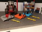 3 desbrozadoras de cadenas, de diferentes colores, a escala 1:32 fabricada en resina 3D y montada a mano.