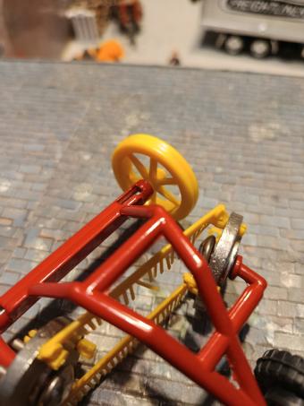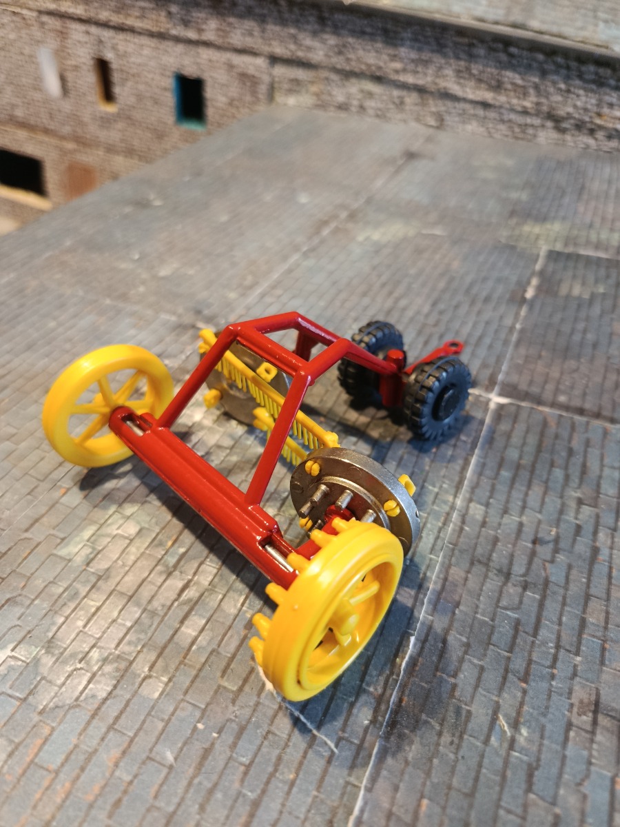 Faneuse Ros très rare. Manque 2 rangées de peignes et l'engrenage coince, sinon en bon état. Échelle 1:32.