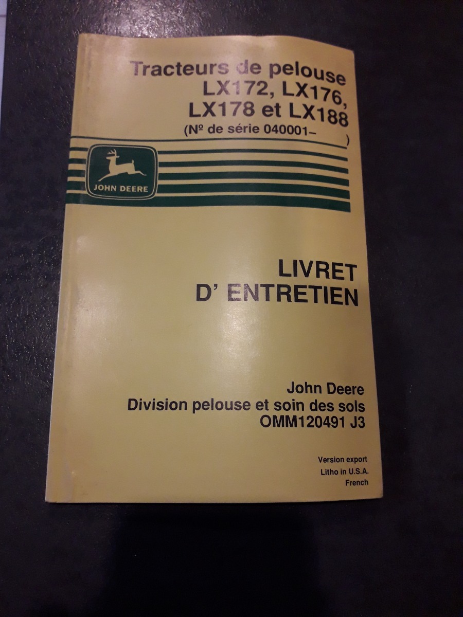 Livret d entretien tondeuse JOHN DEERE LX172 à 188
