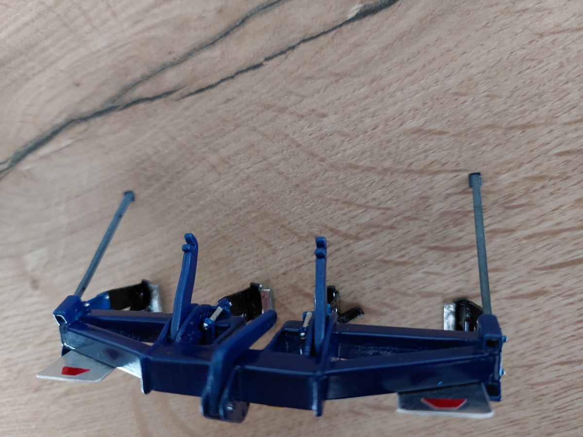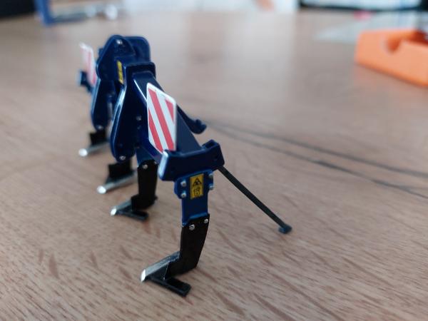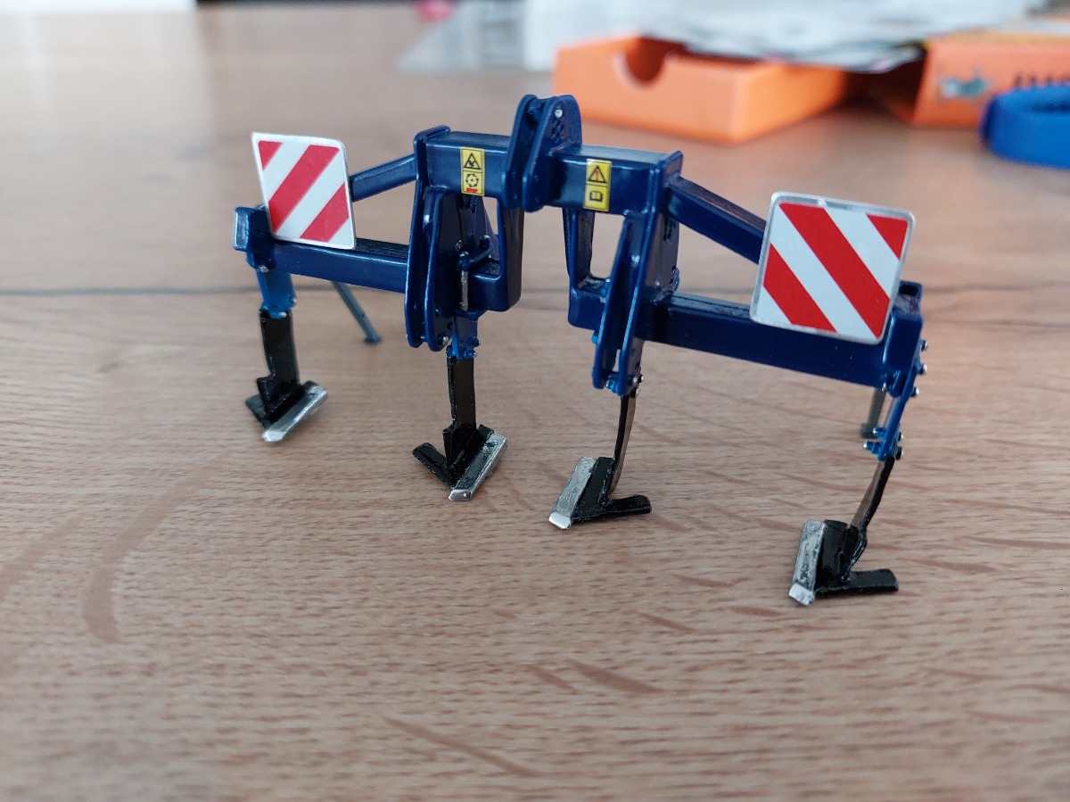 Décompacteur 3m modifié. Peinture bleue, ajout de panneaux de gabarit et de pictogrammes, peinture des lames en noir brillant et dents en chrome. Peinture des rivets en chrome.