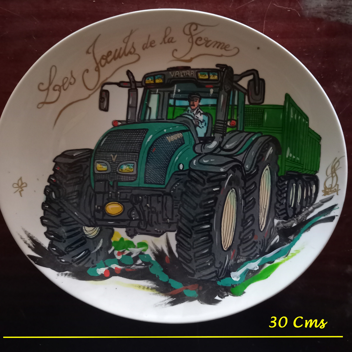 Assiette peinte main, artisanal, Tracteur VALTRA d.30Cms