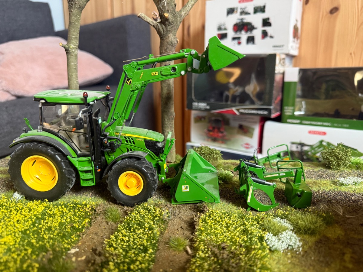 Tracteur JOHN DEERE 6125R + accessoires pour chargeur.
