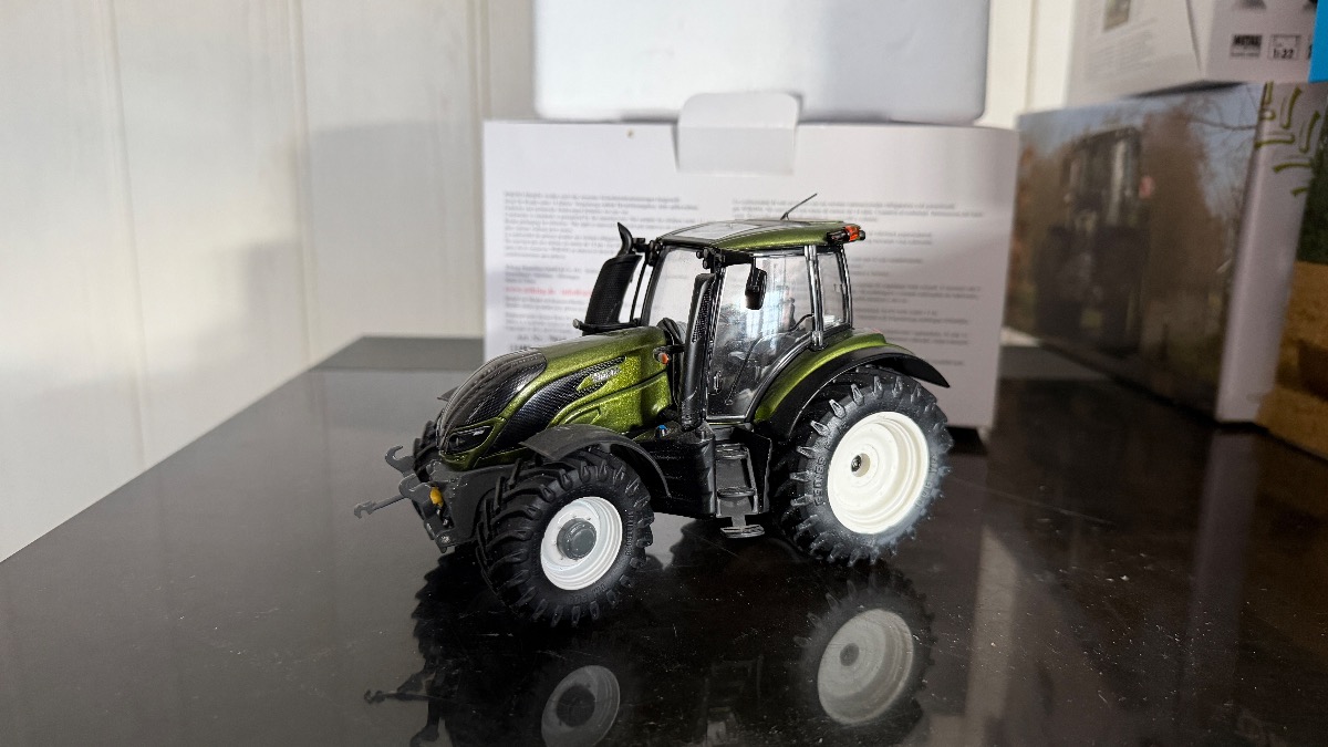 Tracteur VALTRA T214 Vert Olive sur base de T214 bleu, roues modifiées par des pneus de NH T7 UH