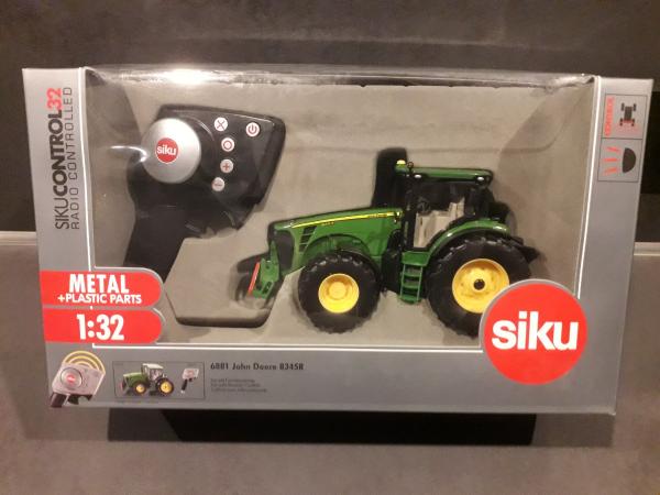 Tracteur radiocommandé neuf JOHN DEERE 8345R de chez Siku. Alimentation par piles AAA. Compatible avec les outils Siku Control.