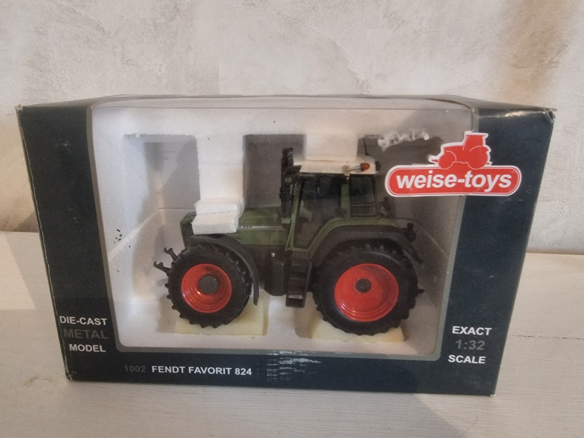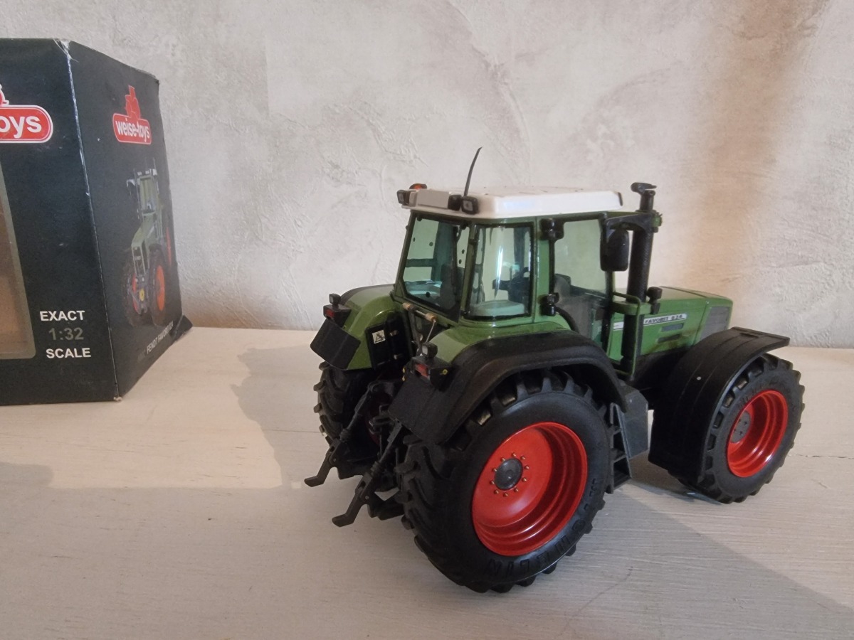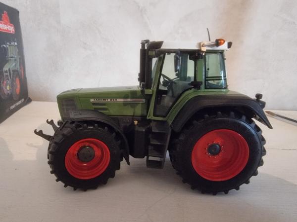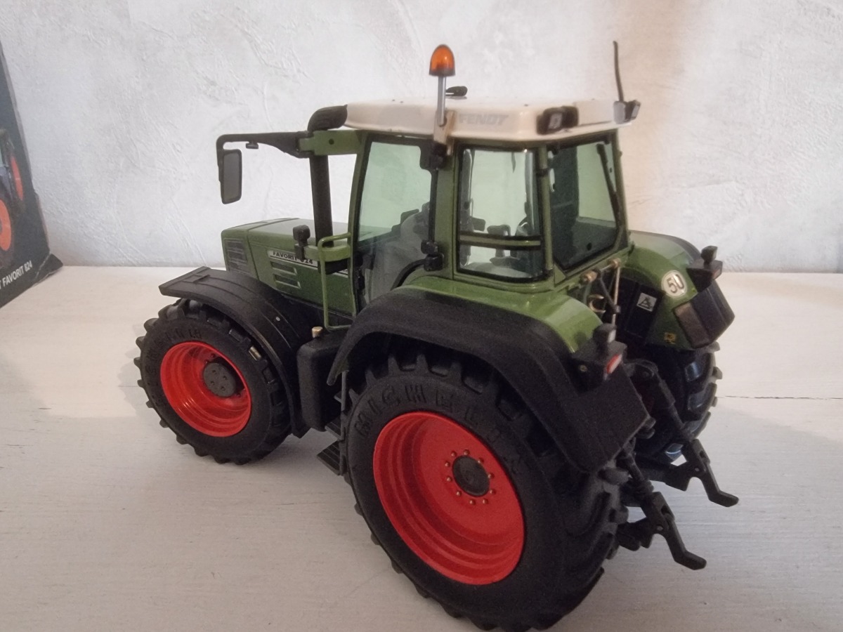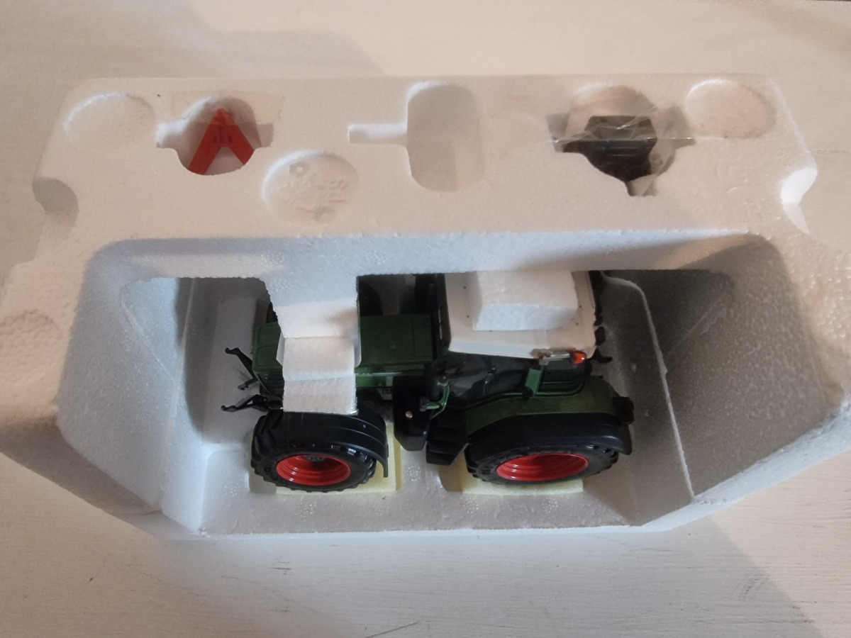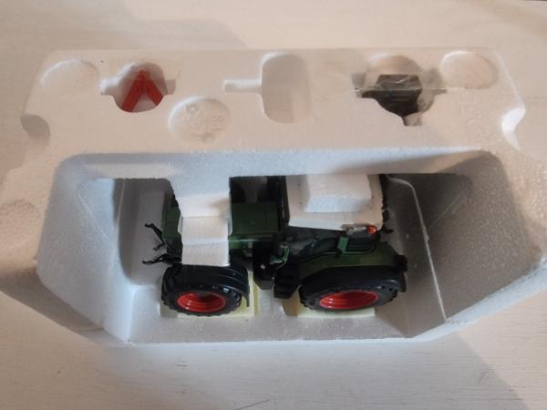 Tracteur FENDT 824 Favorit avec masse avant et triangle. Miniature en parfait état, boite légèrement défraichie mais fait son office (9 ans).
