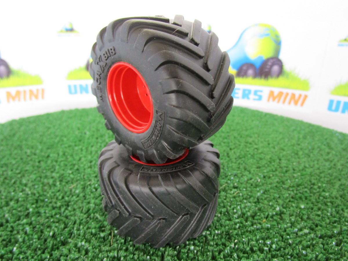 2 jantes aluminium arrière (rouge) + 2 pneus pour FENDT Xylon (Weise Toys). Pneu Michelin 1050.