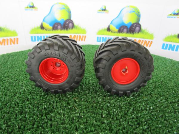 2 jantes aluminium arrière (rouge) + 2 pneus pour FENDT Xylon (Weise Toys)