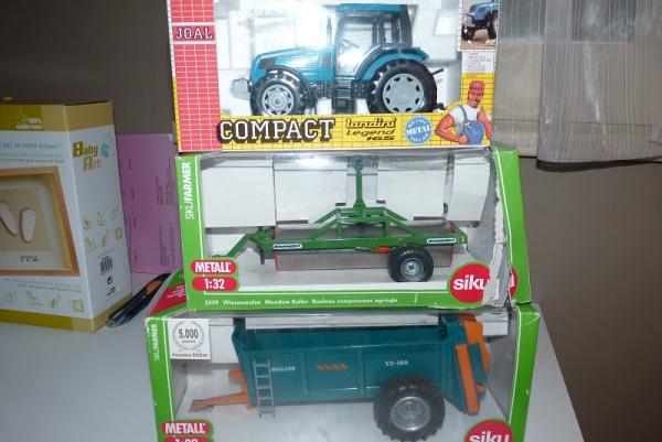 Vends pack de trois miniatures agricoles en très bon état ce pack se compose du landini legend 165 de chez joal, d'un épandeur a fumier roland siku et d'un rouleau siku