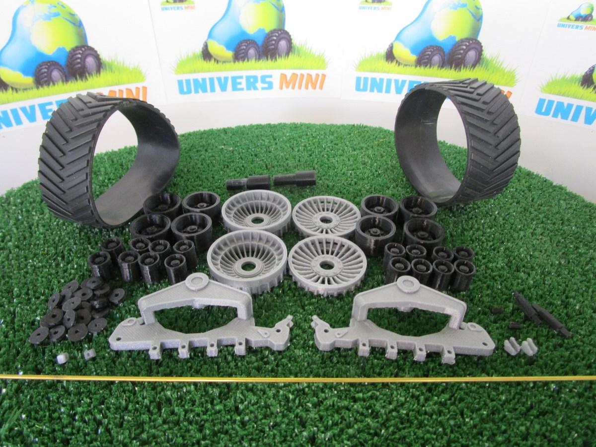 Train de chenilles 4 galets en kit Gris/Gris. Pour un usage principal sur une moissonneuse batteuse compatible tracteurs et ensileuses. Largeur de chenille 28.50mm. A monter et à peindre (optionnel).