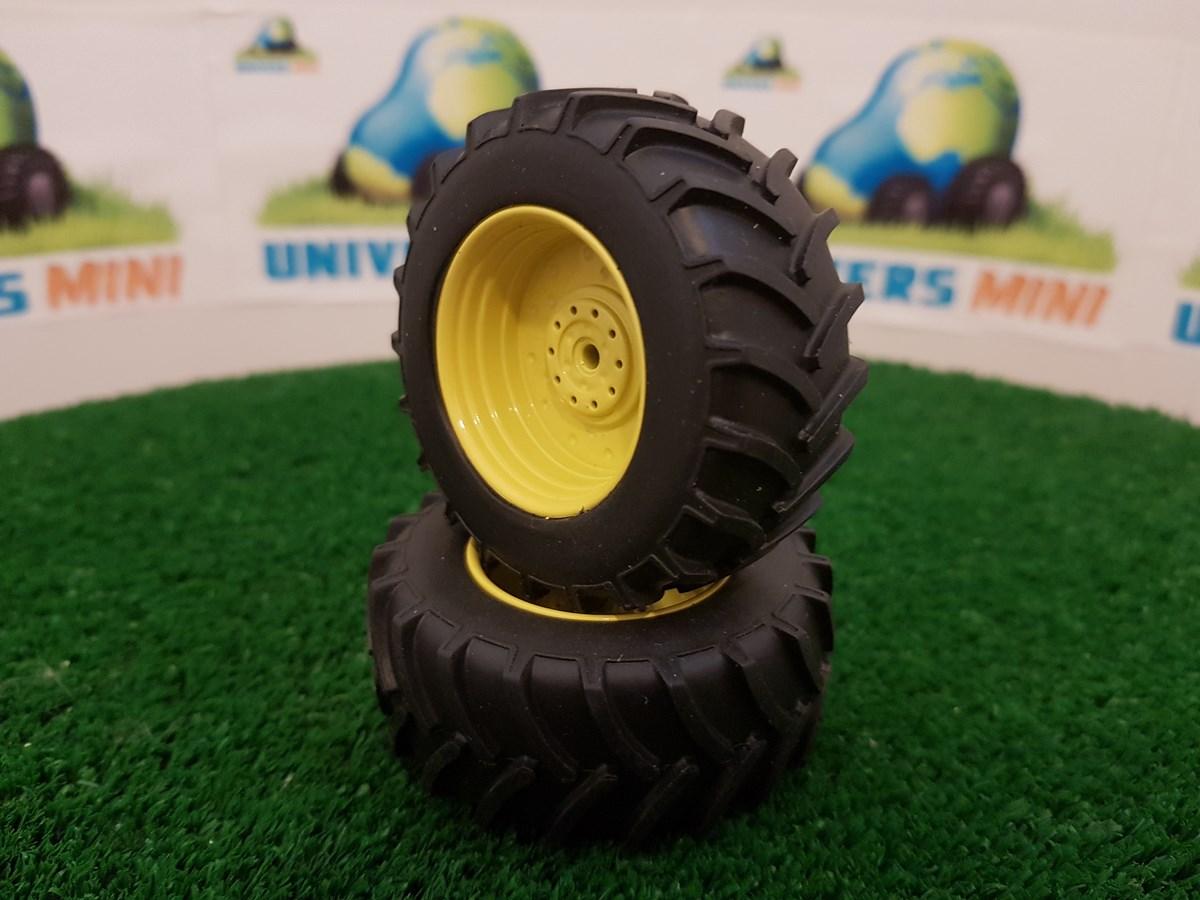 2 jantes aluminium arrière (jaune) + 2 pneus pour JOHN DEERE 4955/4755 (Schuco)