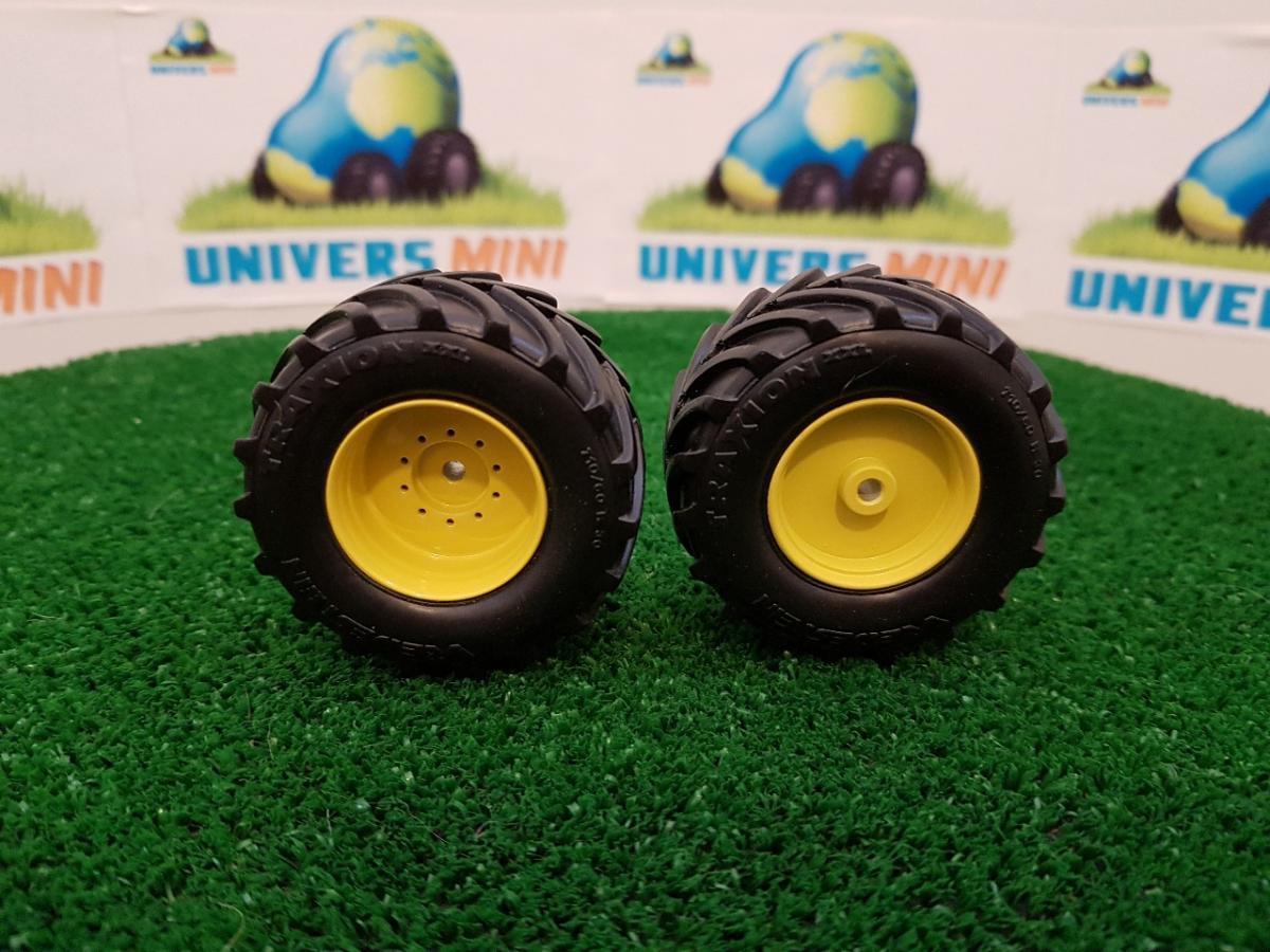2 jantes aluminium arrière (jaune) + 2 pneus pour ensileuse JOHN DEERE 8500i (Wiking 7832)