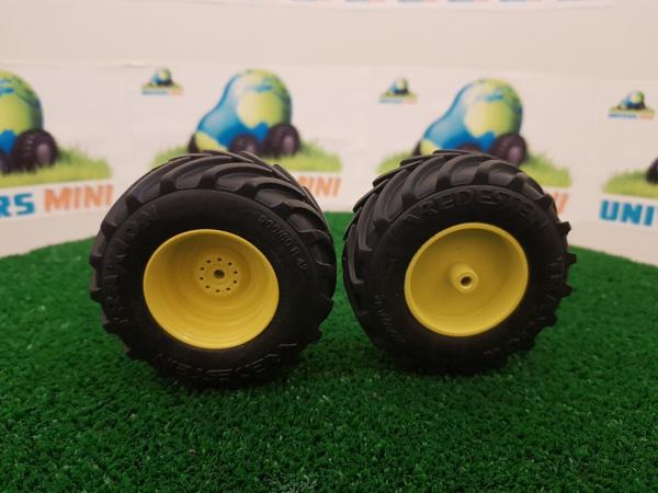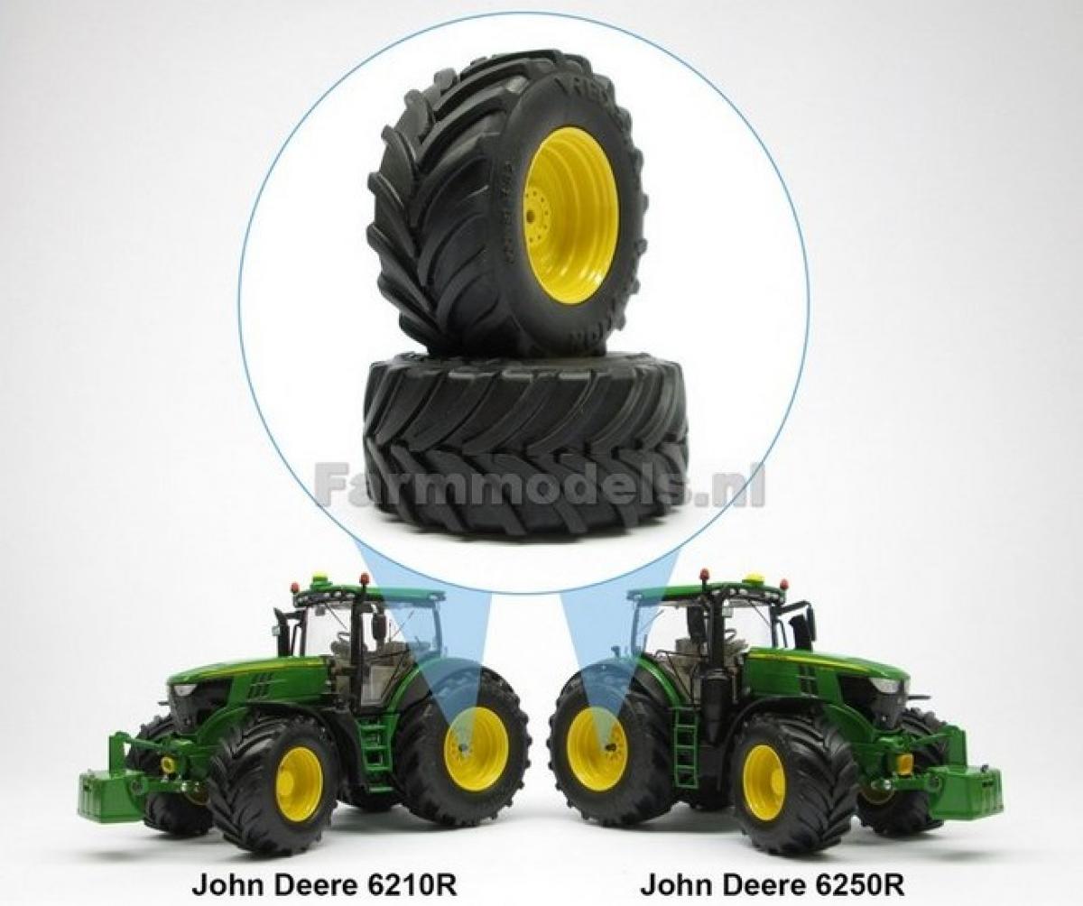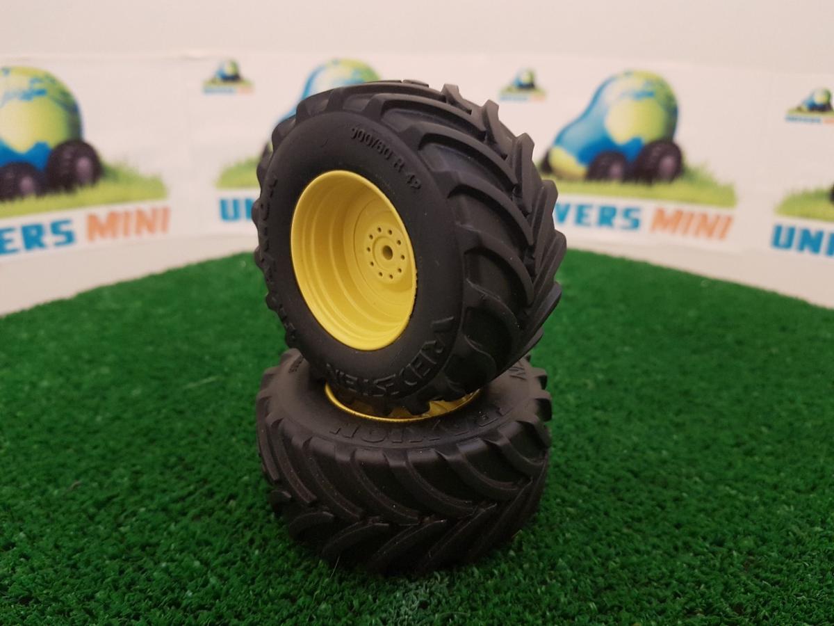 2 jantes aluminium arrière (jaune) + 2 pneus pour JOHN DEERE 6210R/6250R (Wiking 7321/7836)