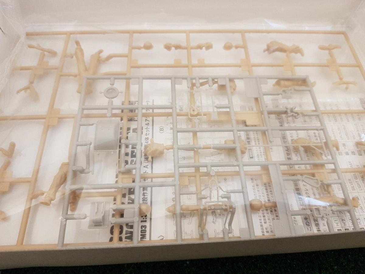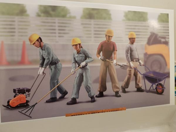 Set de 4 ouvriers (3 hommes/1 femme) et accessoires, à monter et à peindre (peinture non fournie). Echelle 1/35ème mais convient parfaitement pour du 1/32ème.