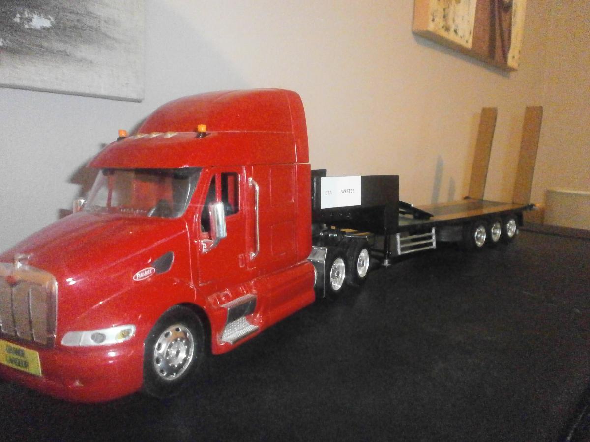 le porte engin est artisanal et le peterbilt est de chez new ray.