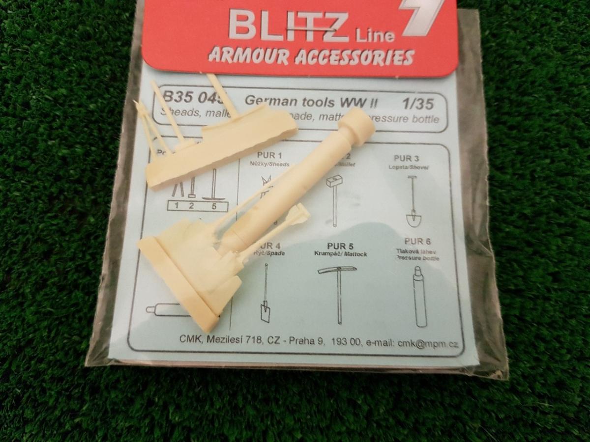 Kit outils. Échelle 1/35ème mais convient parfaitement au 1/32ème. A monter et à peindre.