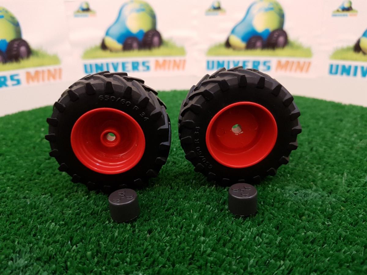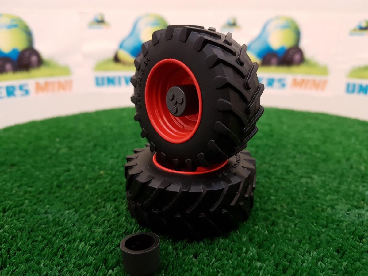 2 jantes + 2 pneus avant Trelleborg 650/60 R34. Couleur rouge. Diamètre 52.2mm. Largeur 20.2mm.