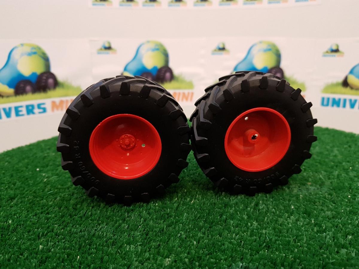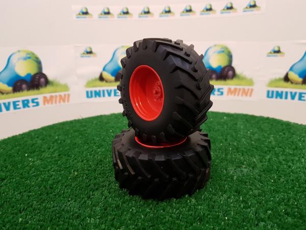 2 jantes + 2 pneus arrière Trelleborg 900/60 R42. Couleur rouge. Diamètre 68.2mm. Largeur 28.2mm.