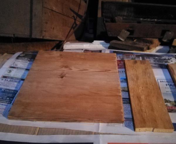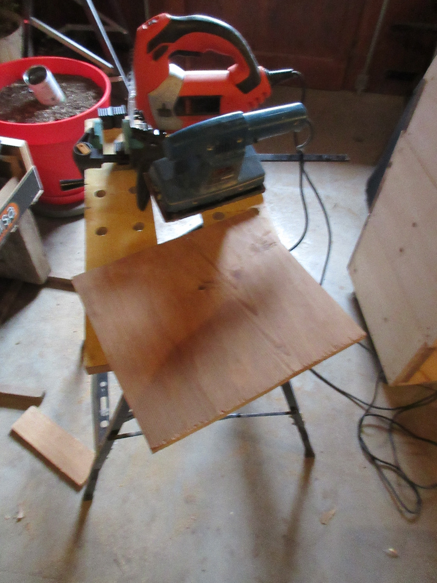 découpage de la planche dans une vieille après ponçage gros grain puis petit.