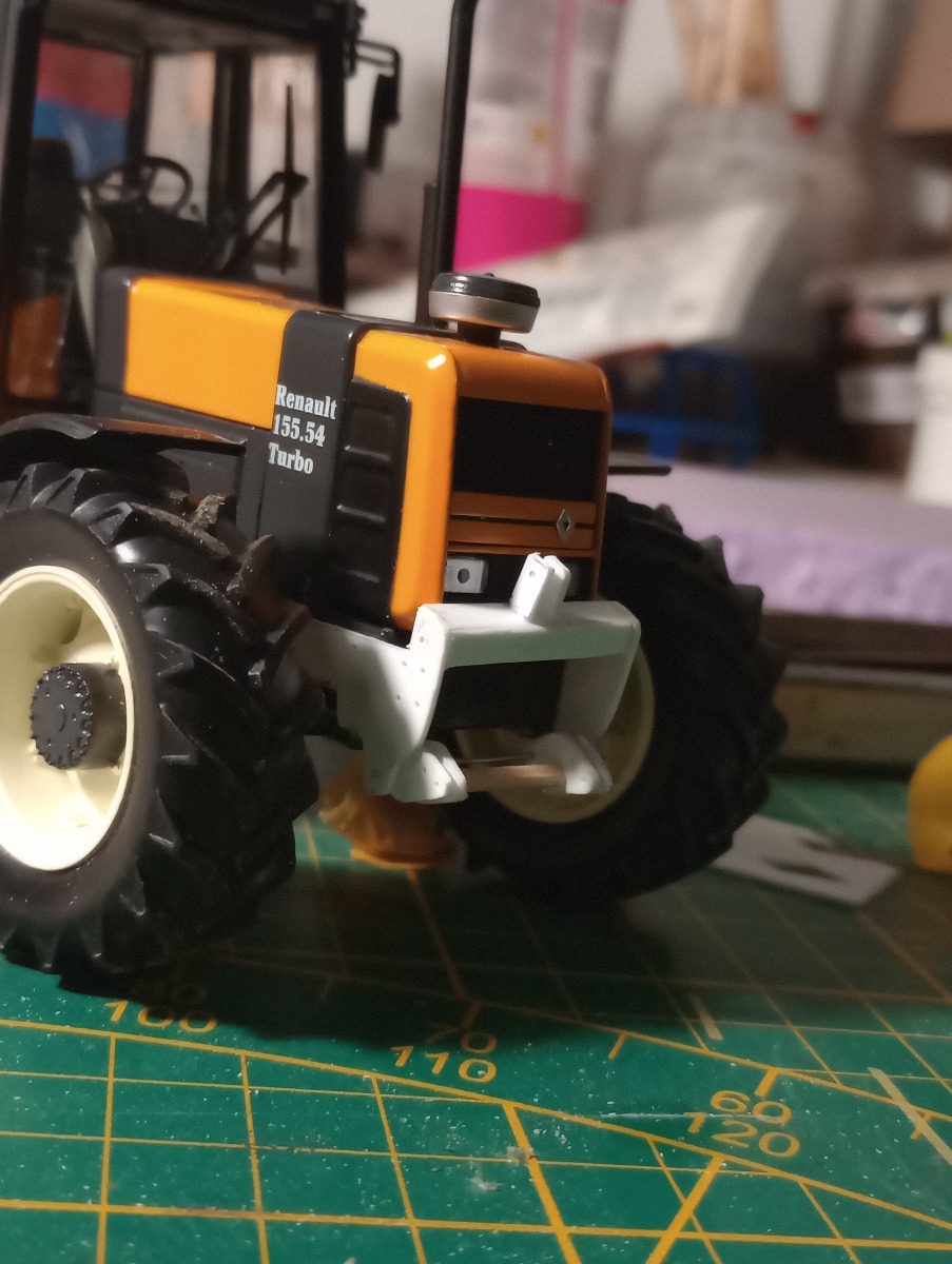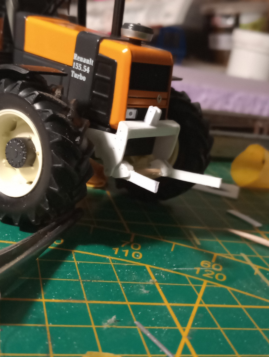 J'ai construit un relevage pour mes Renault Réplicagri à partir de plaques de plastique que j'ai ensuite peint à l'aérographe.