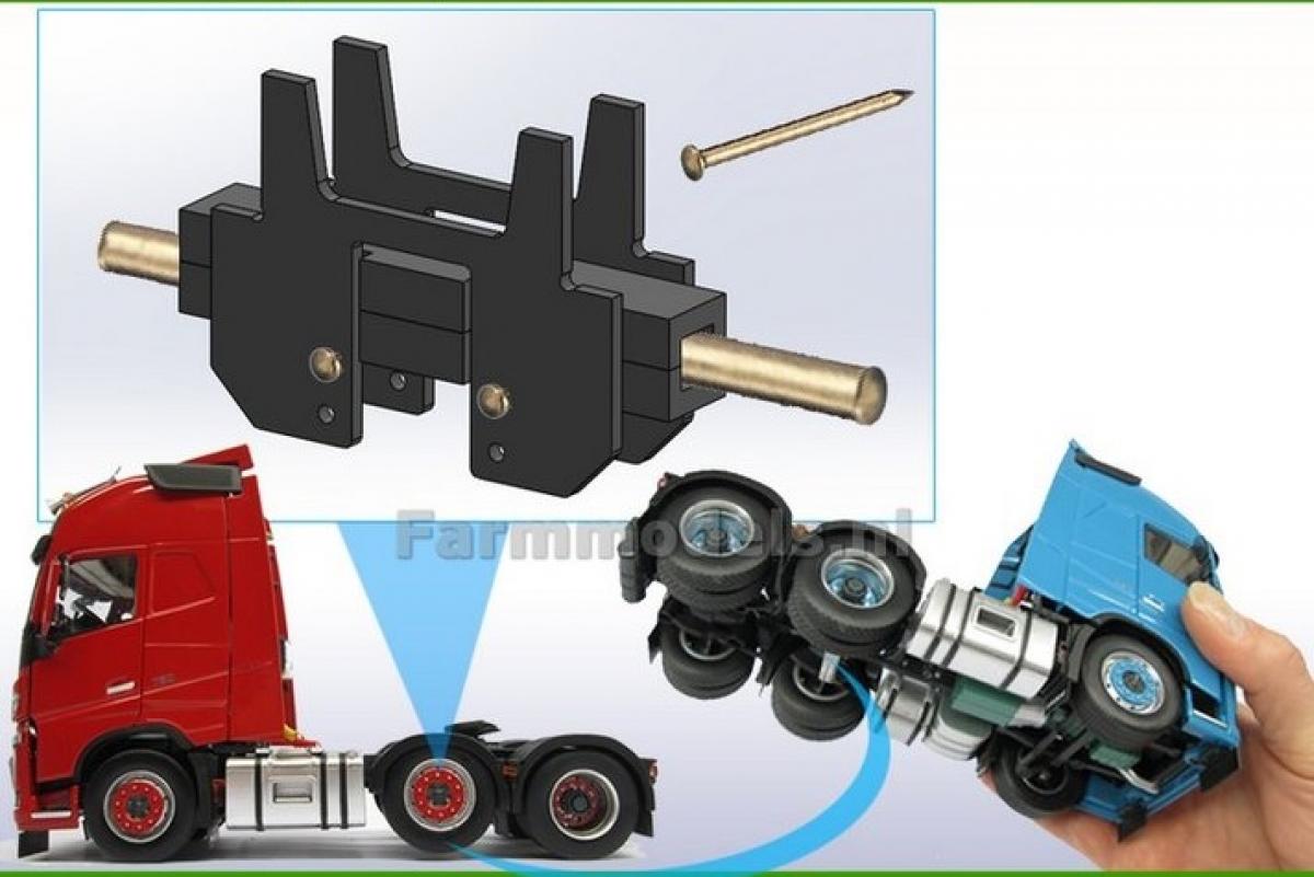 Kit transformation essieu relevable VOLVO. Pour remplacer l'essieu directeur par un double essieu relevable sur le camion VOLVO Marge Models. Utilisez les roues référence 30133/30134. Notice de montage.