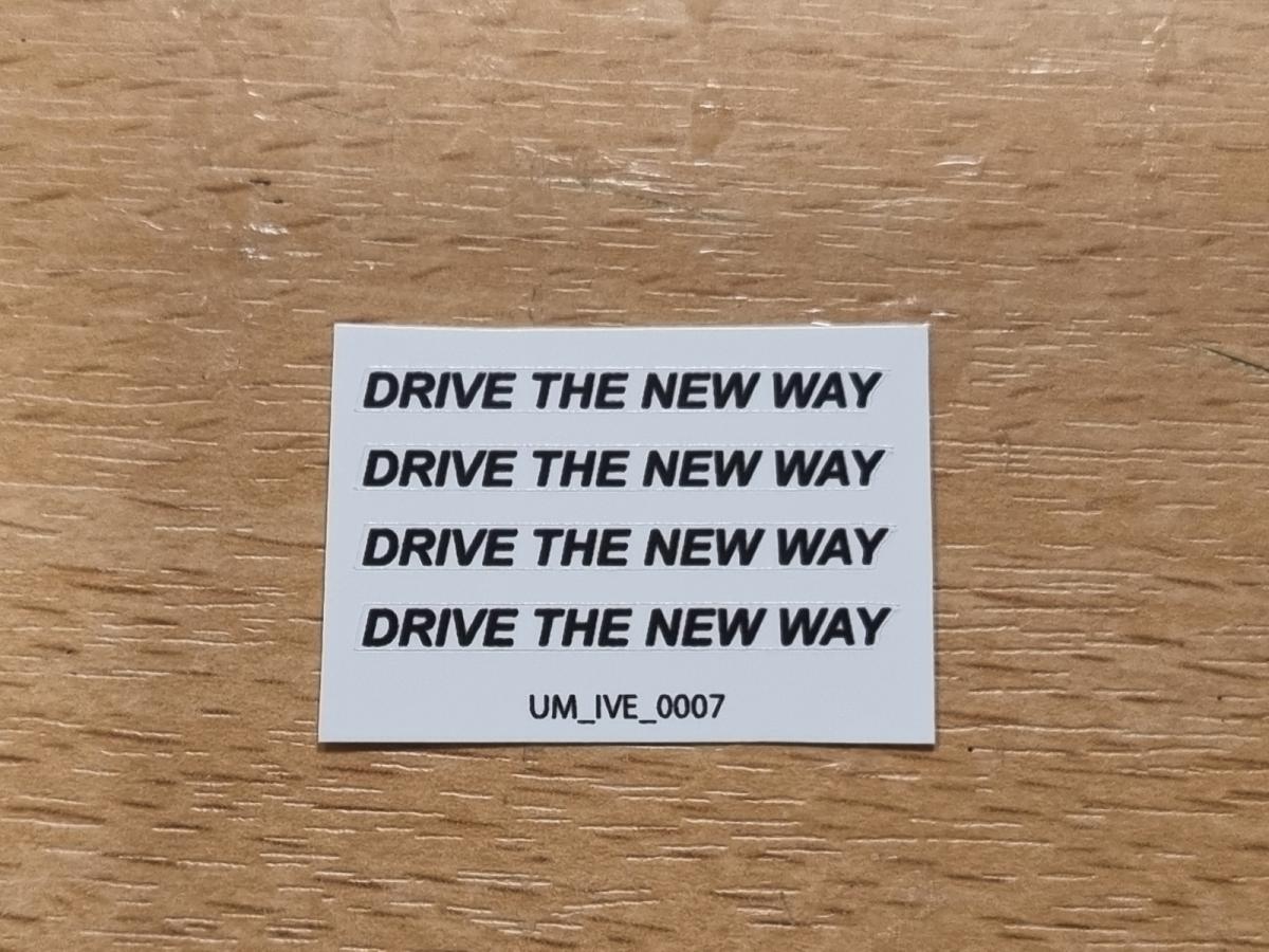 4 décalques IVECO texte Drive the new way noir pré-coupé. 33x2.2mm. Fond transparent. Décalque à l'eau. Faites tremper le motif dont vous avez besoin 10/15 secondes dans de l'eau puis décoller le motif pré-coupé. Comment poser les décalques.