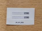 2 autocollants presse MASSEY-FERGUSON Hesston 2190 pré-coupé. 3x26.7mm. Fond transparent.