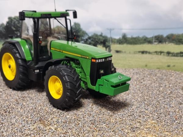 Porte masse avec masse et feux pour tracteur JOHN DEERE 8400 Schuco (7875). A peindre.
