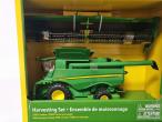 Moissonneuse batteuse JOHN DEERE S780 avec tracteur 7240R et transbordeur.