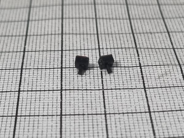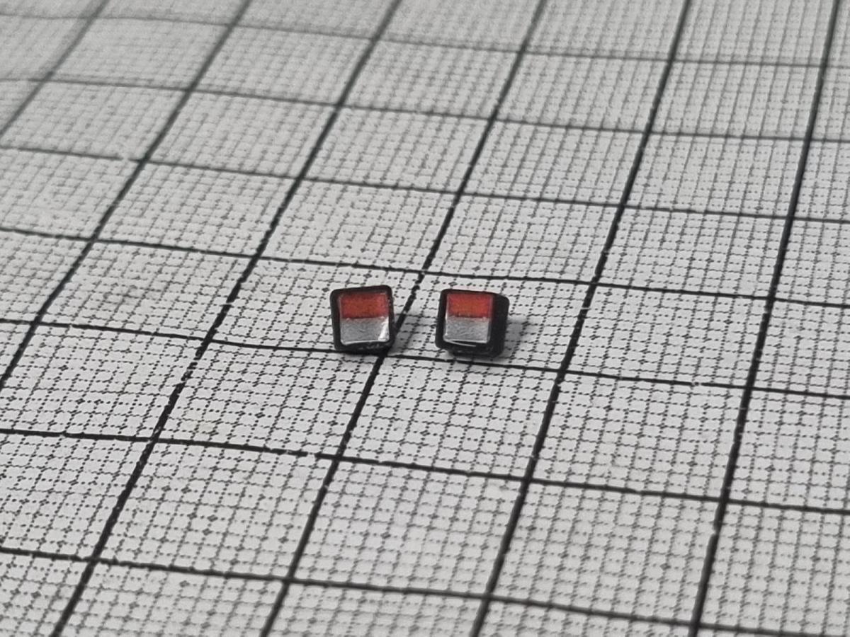 2 feux bicolores blanc et orange carré sur bloc noir avec tige arrière pouvant être recoupée facilement. 3x3 mm.