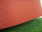TRES BIEN ! ,j'ai bardé l'arrière de mon hangar en cours de réalisation avec celui -ci; la toiture est aussi recouverte de ce carton ondulé marron qui imite bien la tôle ondulée !..."rugbyman 47"