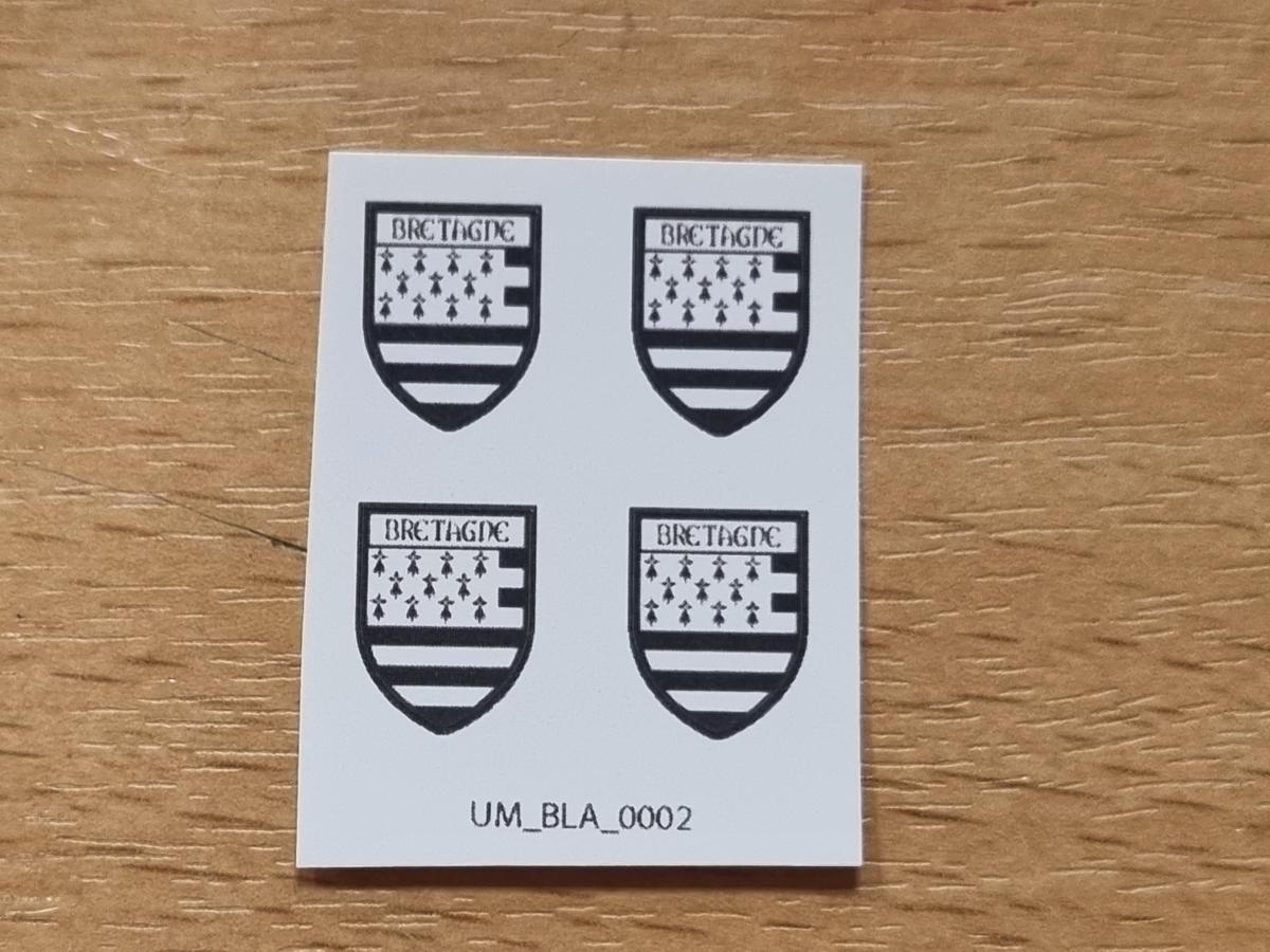 4 décalques blason Bretagne pré-coupé. 13x9.9mm. Faites tremper le motif dont vous avez besoin 10/15 secondes dans de l'eau puis décoller le motif pré-coupé. Comment poser les décalques.