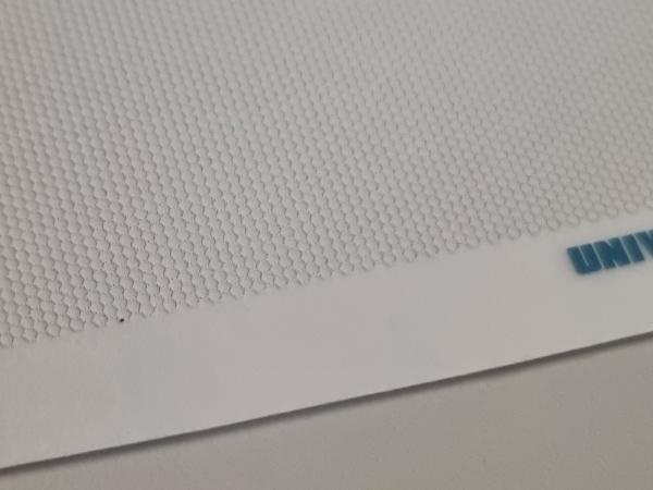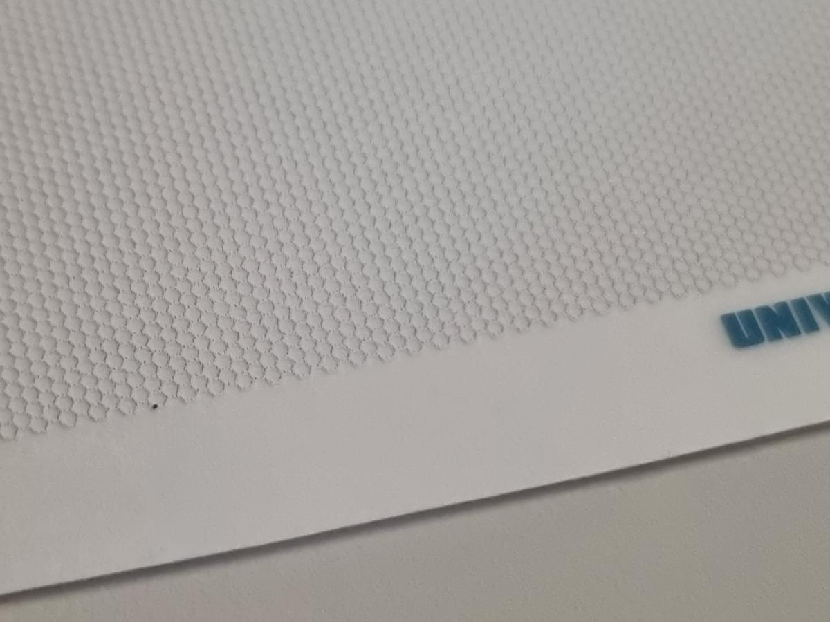 Autocollant nid d'abeille maille petite (0.7mm) gris clair de 115x40mm. A découper selon vos besoins. Fond transparent. Idéal pour faire les grilles sur les capots ou les pots d'échappement par exemple.