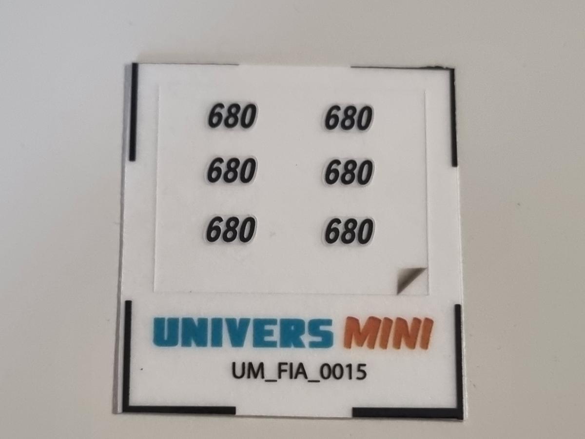 6 autocollants FIAT 680 noir/blanc. 2.5x4.5mm . Pré-coupés, décollez et collez comme un autocollant classique ou utilisez la méthode décalque.