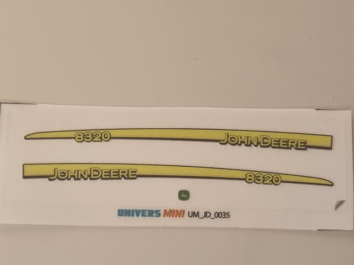 Autocollant capot JOHN DEERE 8320 et logo John Deere calandre pour capot Artisan32 référence 01313 (pré-coupés).