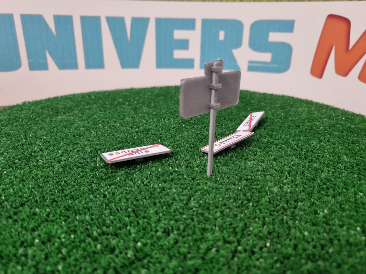 2 panneaux nom de commune personnalisables. Il comprend les supports et les autocollants posés. Vendu sans poteau. Il est à commander séparément : référence UMP_0013.