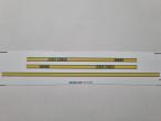 3 autocollants JOHN DEERE 2264. 2 bandes 142x4mm et 1 bande de 200x4mm. Pré-coupés, décollez et collez comme un autocollant classique ou utilisez la méthode décalque.