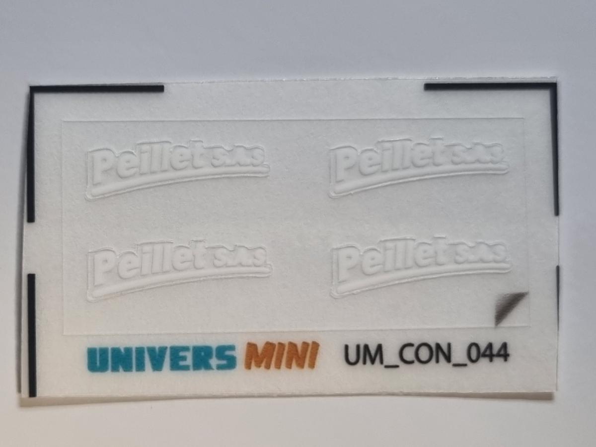 4 autocollants concession PEILLET SAS blanc. 3.75x13mm. Pré-coupés, décollez et collez comme un autocollant classique ou utilisez la méthode décalque.