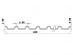 Tôle nervurée moyenne blanche, section matière 0.30mm. Épaisseur de la tôle 1.50mm, distance entre deux sommets 6.30mm, dimensions utiles 400x265 (+-1mm).
