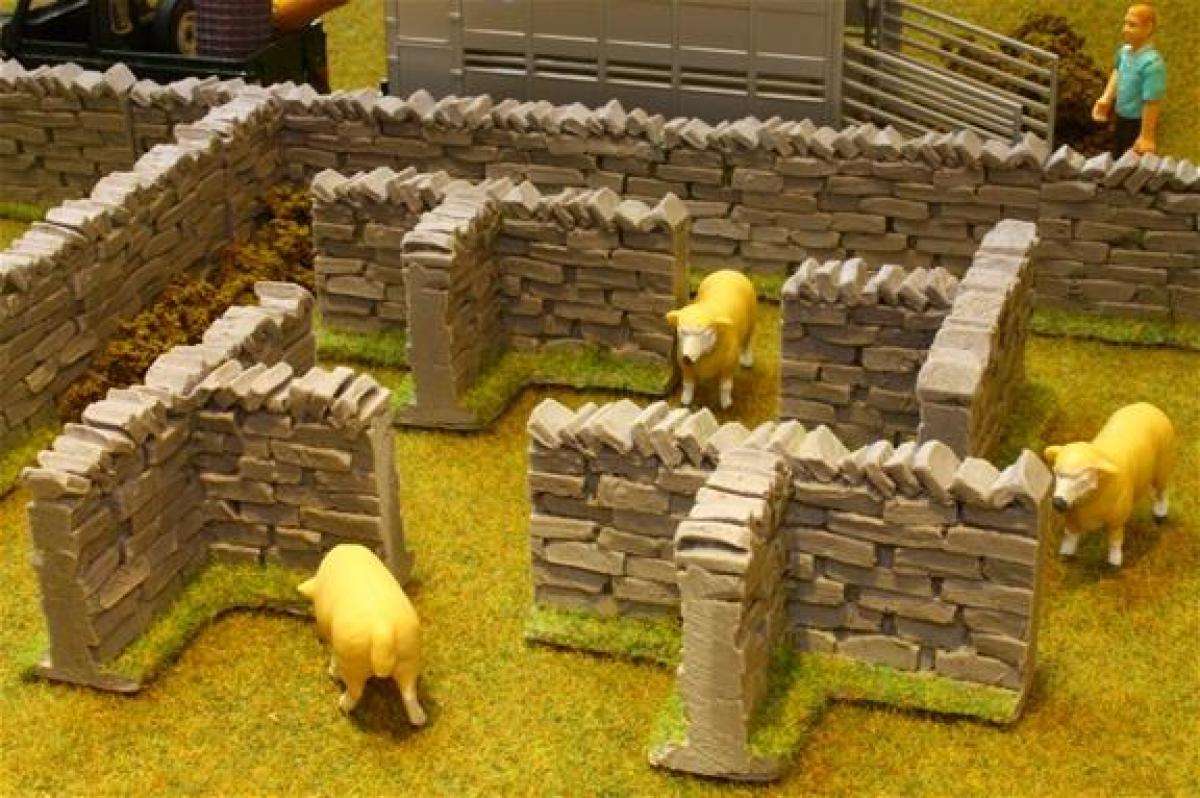 4 murs de pierre en forme de T à utiliser avec la référence BT2091. Dimensions d'un mur : 80mm x 40mm x 40mm.