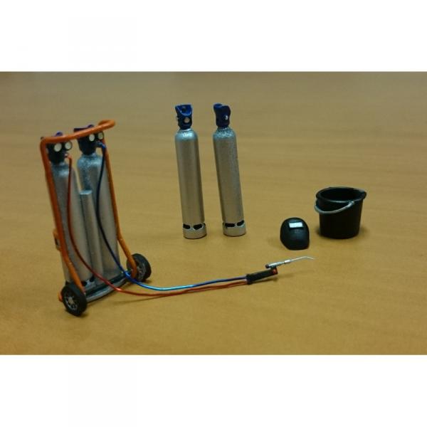 Kit soudure. 12 pièces à monter et à peindre. Hauteur bouteille : 35 mm.