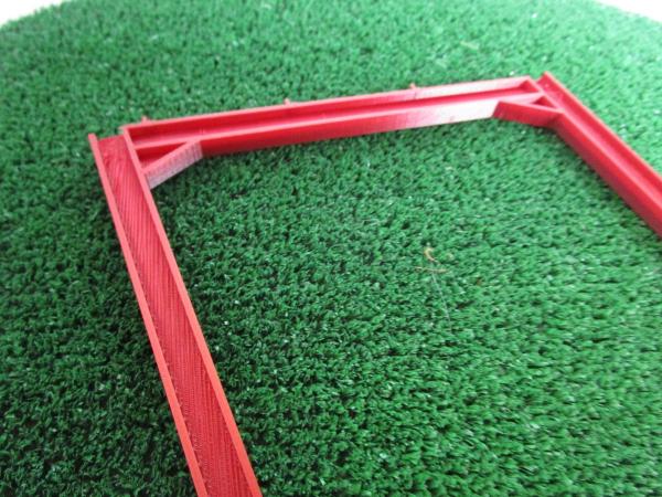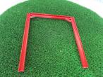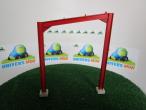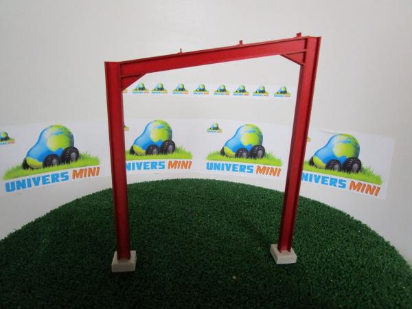 Ferme bordeaux mono-pente. Largeur : 4.5m. Hauteur : 5m. 180mm x 150mm x 7mm. Les plots pour les pieds sont vendus séparément sous la référence PLFE.
