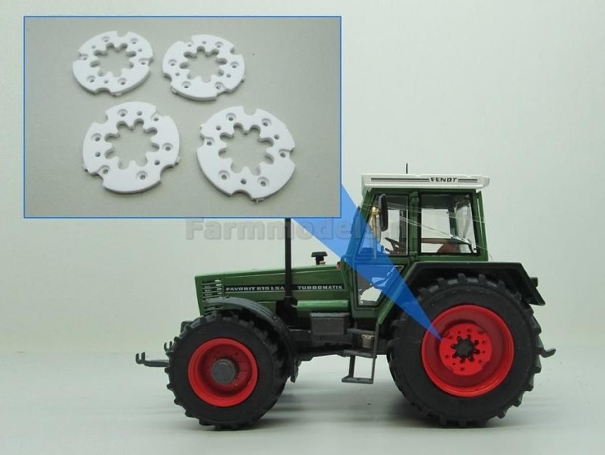 4 masses de roues pour tracteur FENDT 615. A peindre. Diamètre 18.7mm. Épaisseur 1.5mm.