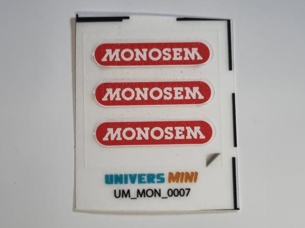 3 autocollants logo MONOSEM rouge/blanc 18mm (pr...