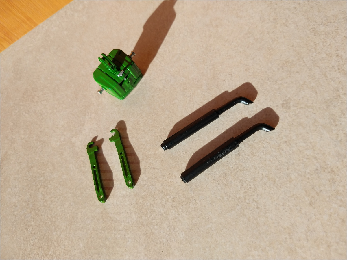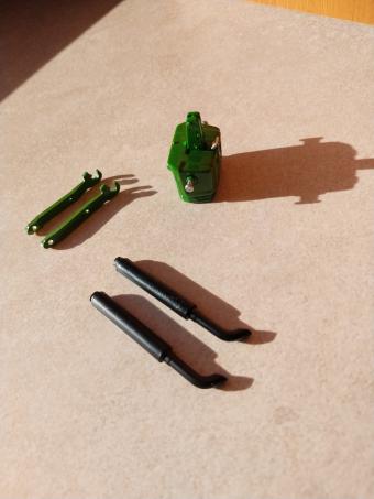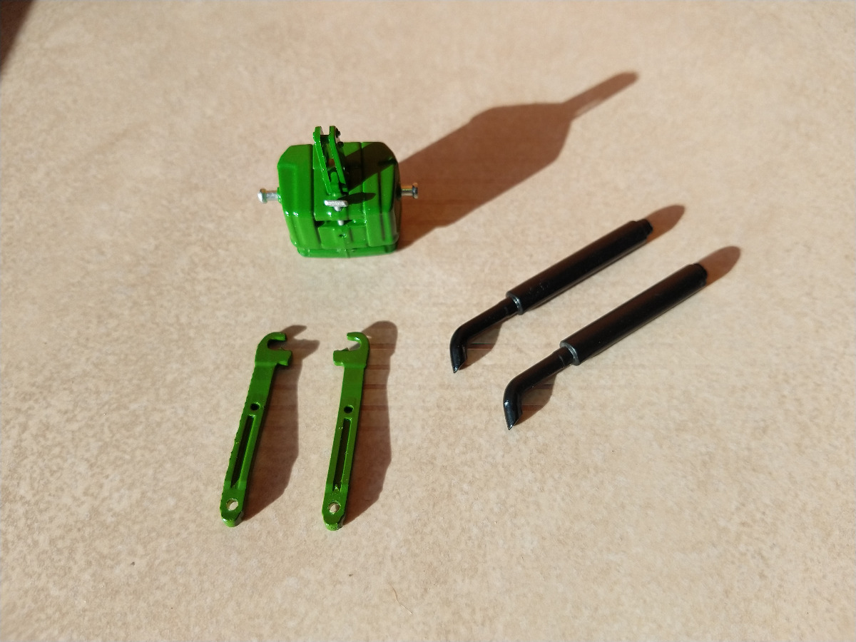 - 2 Bras de Relevage JOHN DEERE peints couleur JOHN DEERE avec couche de primaire. longueur 37mm. Trou pour fixation 1.6mm