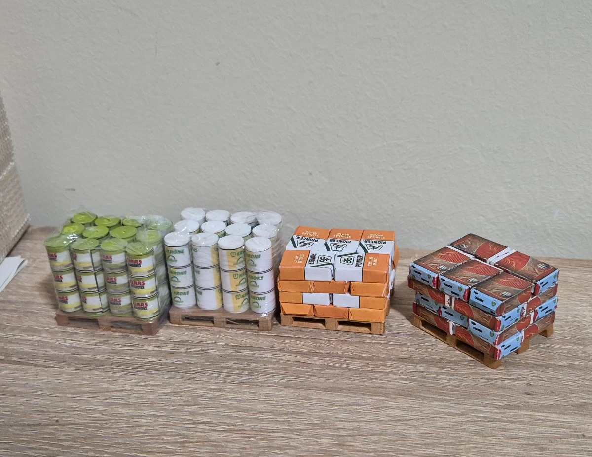 4 pallets avec bobines et sacs de semences
